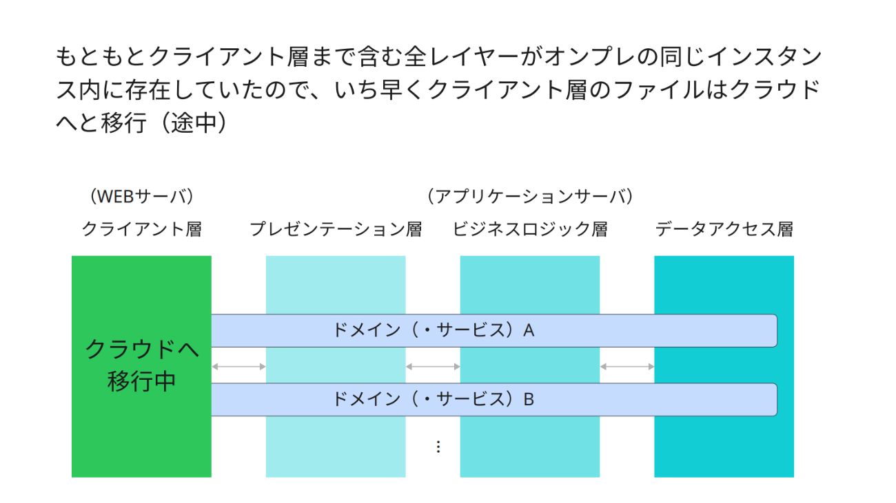 本命は、当然ながらアプリケーション層の刷新だ。ここでは、開発頻度が高く、かつ事業インパクトの大きいドメインから優先的に着手している。現在は、プレゼンテーション層の分離や、頻繁に機能追加が行われる領域の切り出しが進行中だ。