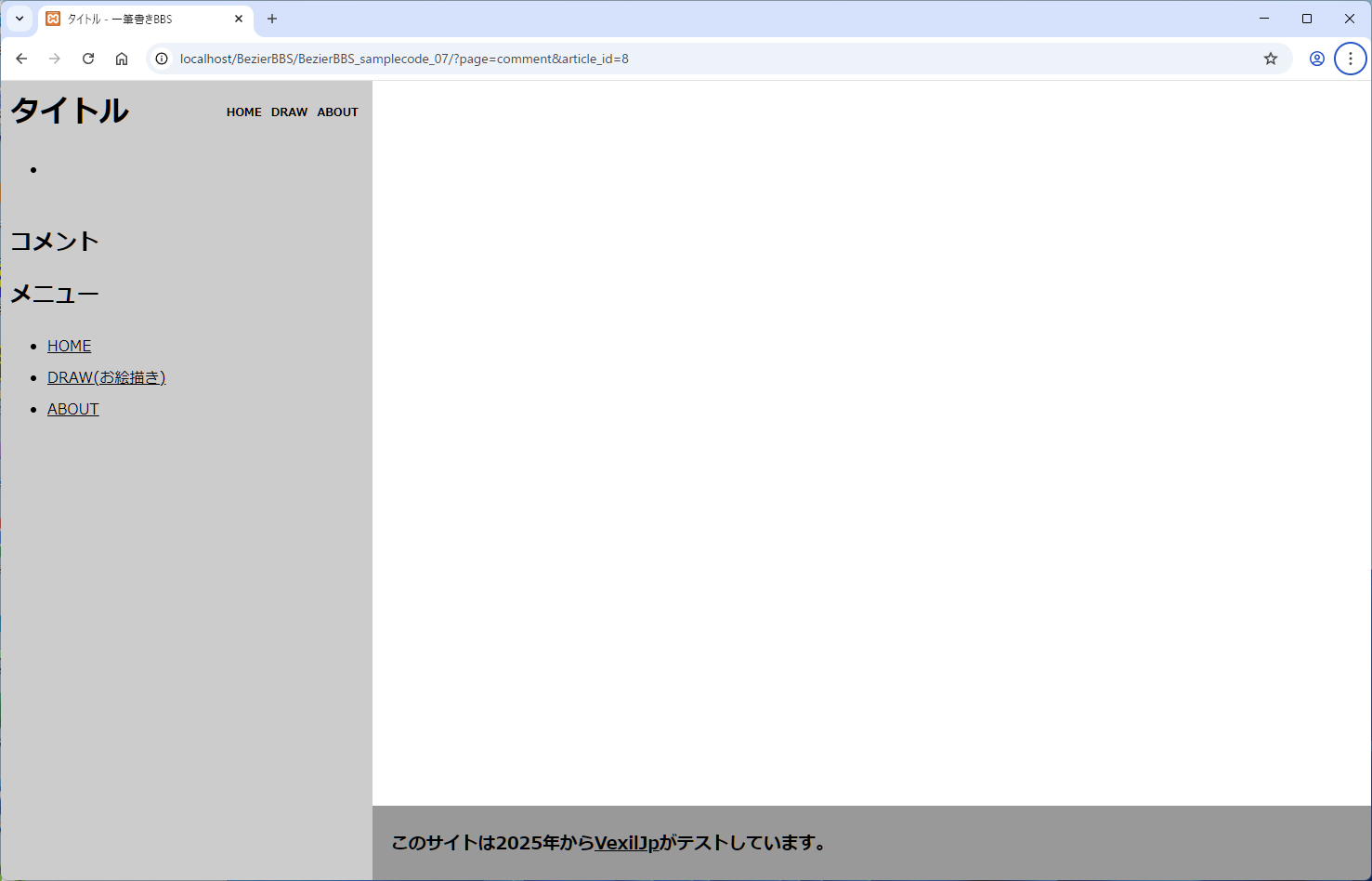 まずはテンプレートのみのコメントページを作成します。これまでと違い、ランダムに記事の絵を表示するのではなく、選択した記事の絵だけを表示するページです。まずは次の図のように、絵が表示されていない空のページを作成します。