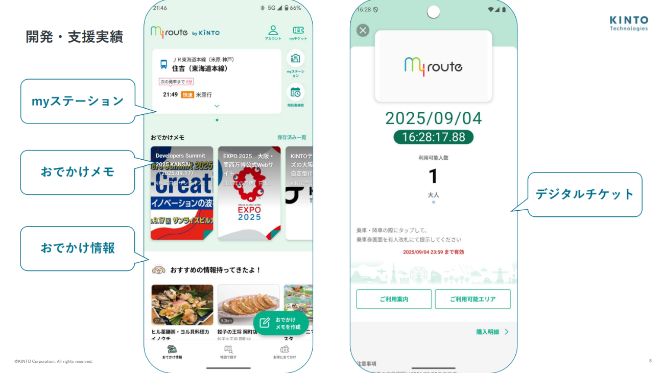 トヨタ自動車の子会社であるトヨタファイナンシャルサービスの傘下で、モビリティサービスの技術開発を担うKINTOテクノロジーズ。小林氏が担当するMaaSアプリ「my route」は、九州エリアを中心に展開され、リアルタイム運行情報やパーソナライズされたお出かけ情報、デジタルチケット機能などを提供している。