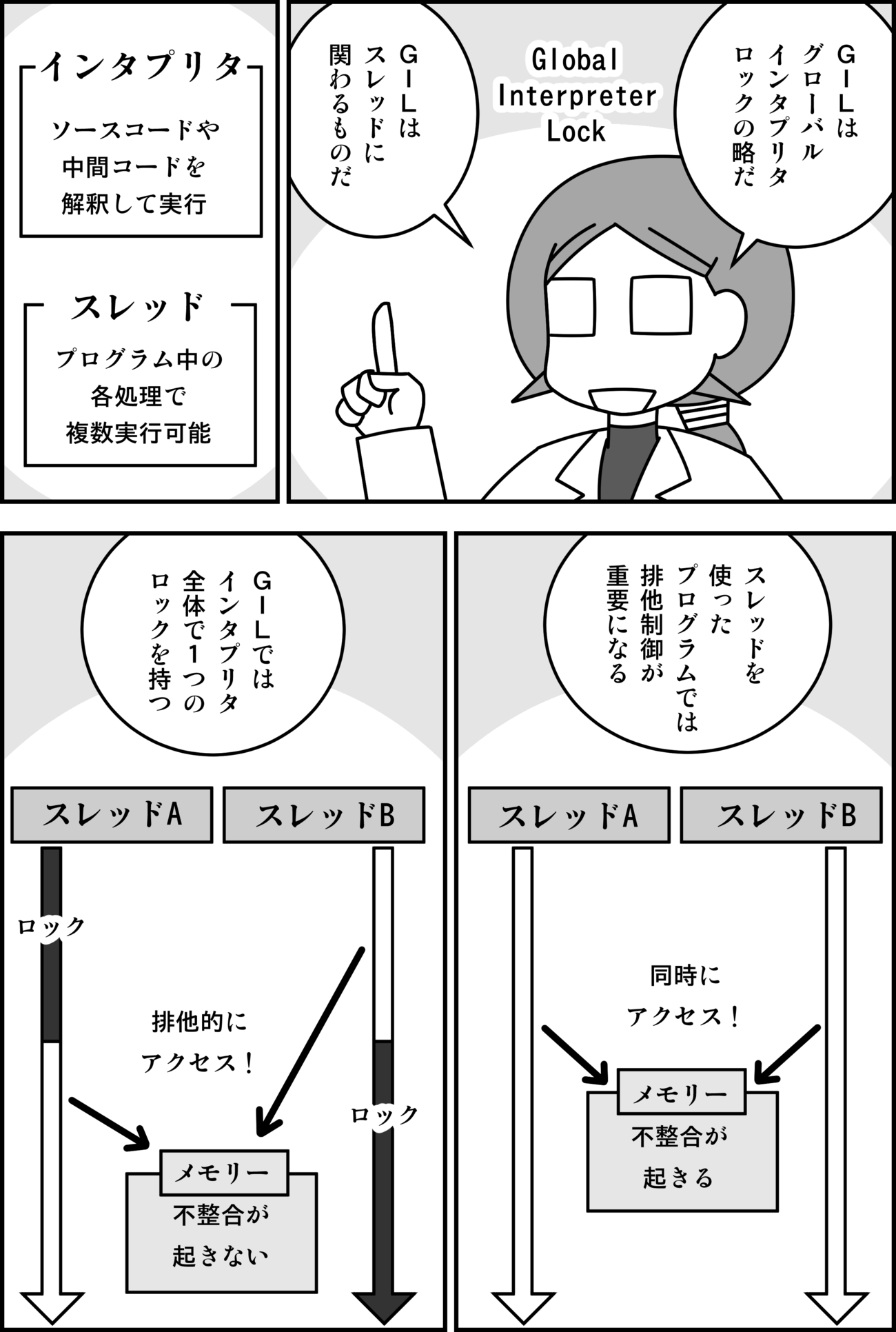 プログラム中で複数の処理を並行して実行する際、各処理のことをスレッドと呼ぶ。