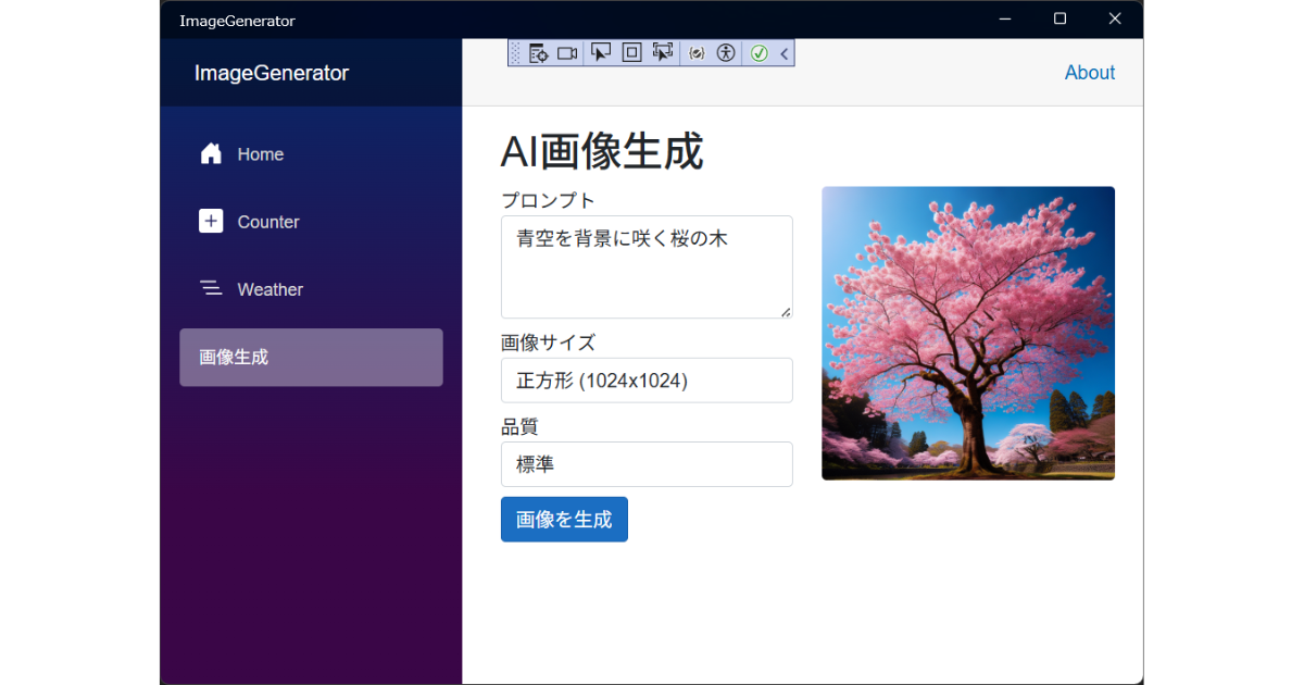 仮実装のモックサービスだった画像生成ロジックを、OpenAIのImage Generation APIを使った実装に置き換え、次のようなアプリを作成します。