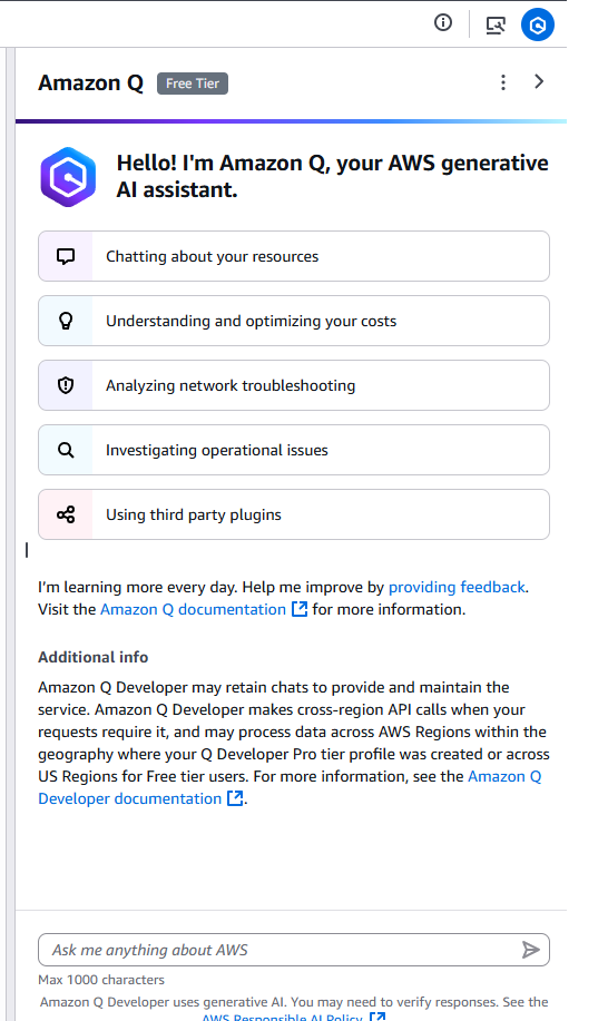 Amazon Q Developerの画面