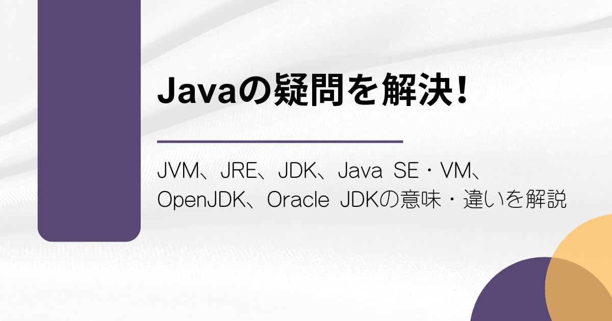 Javaを学び始めたり、開発環境を構築しようとしたりすると、「JVM」「JRE」「JDK」「Java SE」「VM」「OpenJDK」「Oracle JDK」といった類似する専門用語・略語にたくさん出くわします。特に初学者は違いがわかりづらく混乱するでしょう。よく挙げられる疑問としては、次のようなものがあります。