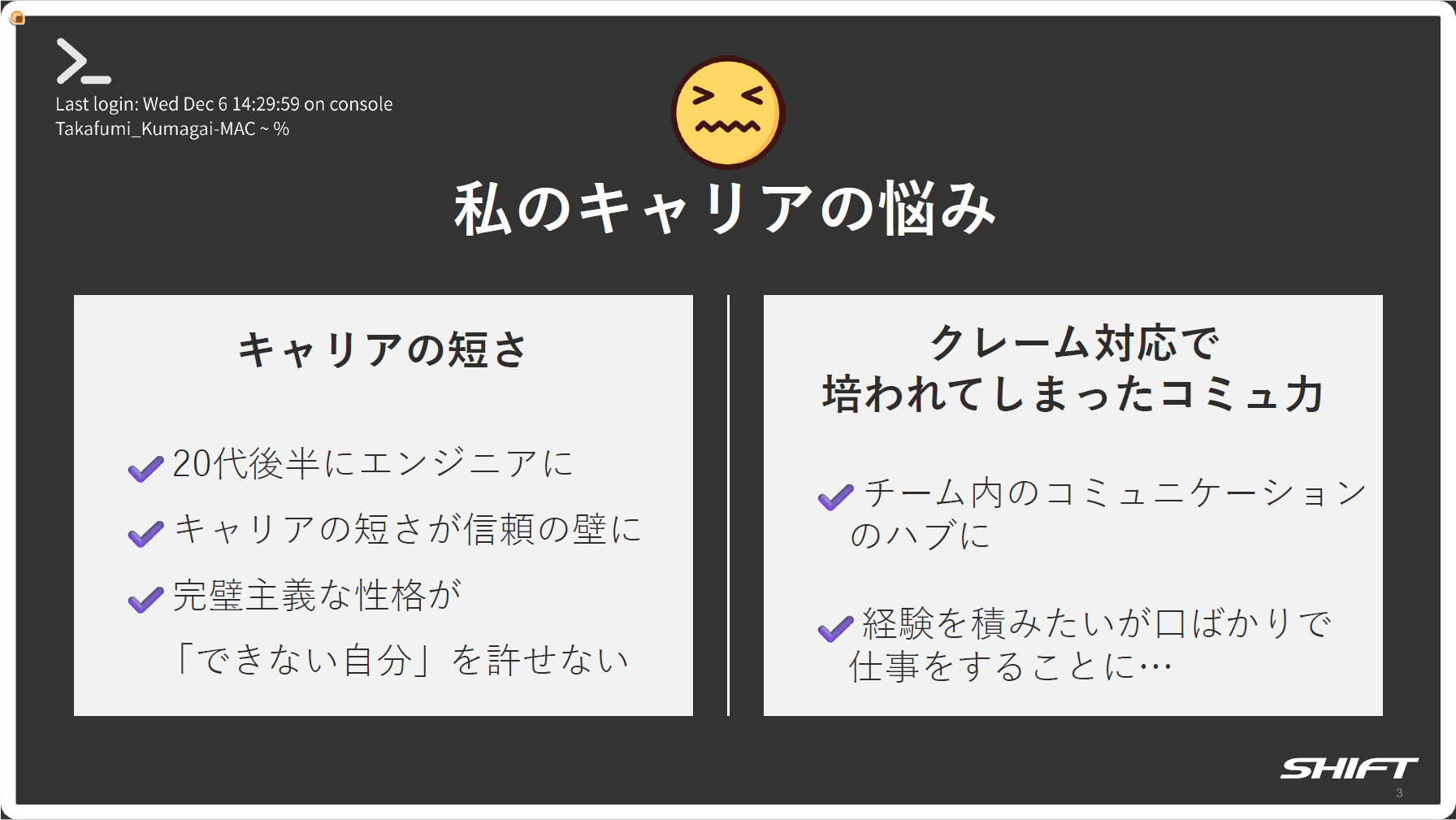 エンジニアとしてのキャリアをスタートさせたのは20代後半。同年代と比べて開発経験が短く、熊谷氏にとってコンプレックスだった。加えて完璧主義な性格も災いし、できない自分と周囲を比較しては自信を失う日々が続いた。