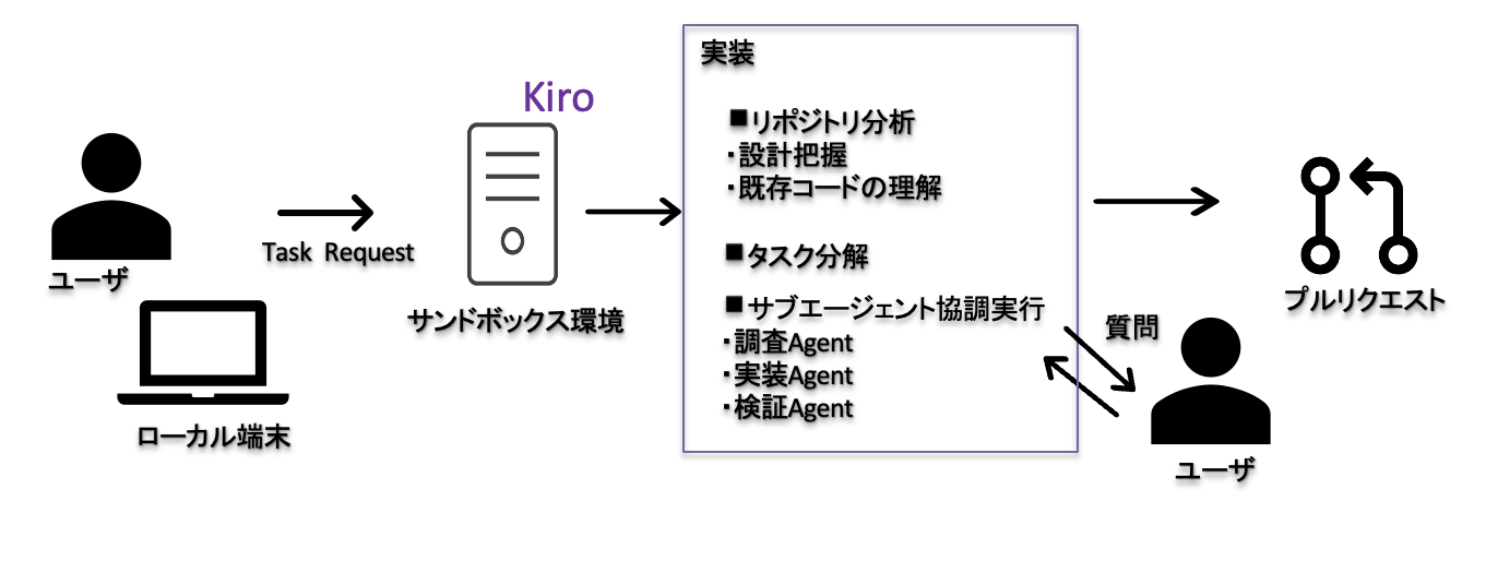 これに対し Kiro Autonomous Agent は、非同期(Asynchronous)にタスクを進行できる点が決定的に異なります。人が別の会議に出ている間や夜間に、AIが独自に試行錯誤を繰り返し、動作確認の取れた状態まで仕上げてくる点において、真の自律型エージェントと言えます。