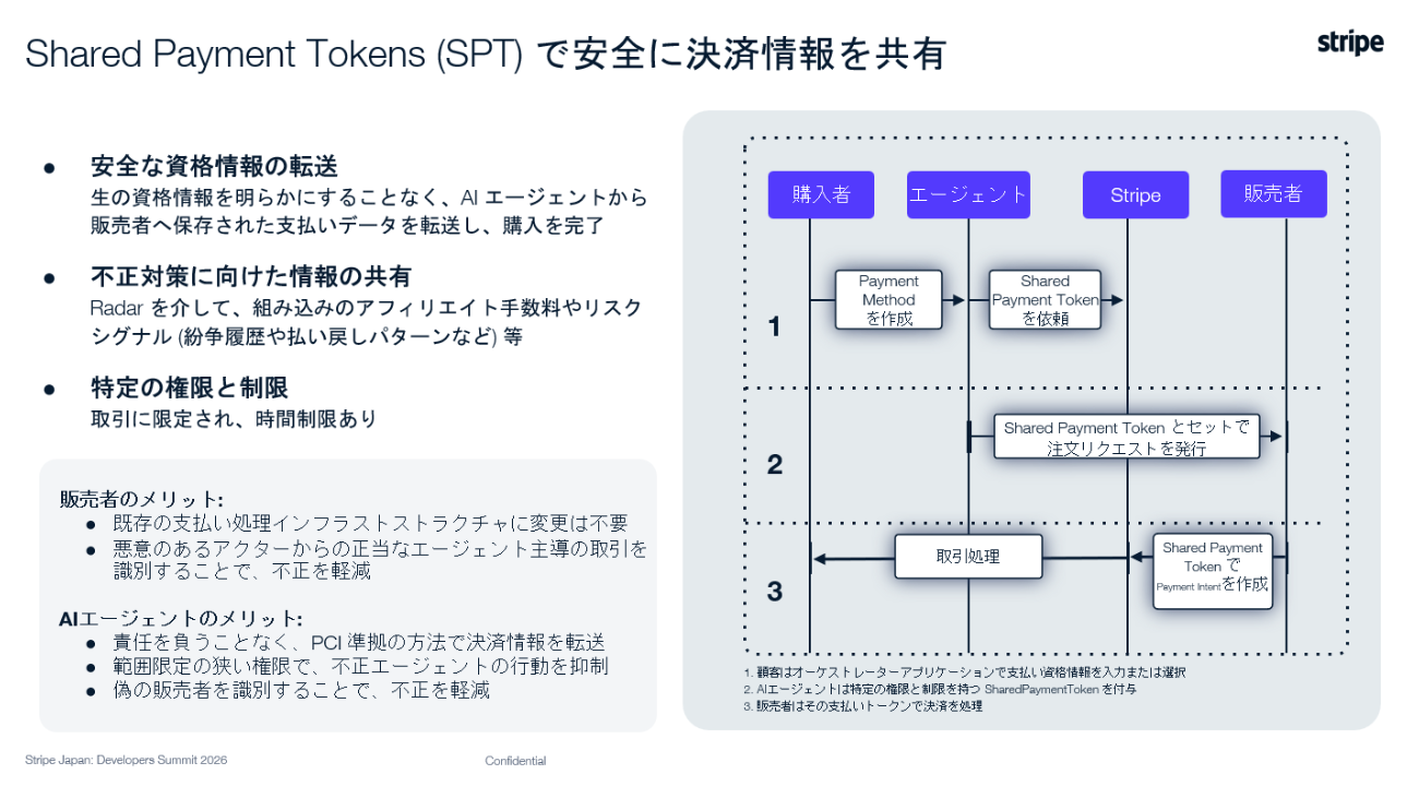 こうした流れに対して、ストライプ社は「Agentic Commerce Protocol(ACP)」と「Shared Payment Token(SPT)」の二つの製品をリリースしている。