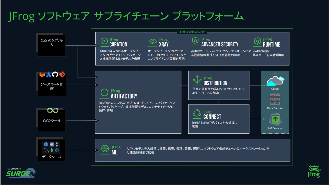 サプライチェーン攻撃への対策と、SBOM作成の対応を同時に実現できる点がJFrog製品の強みである。