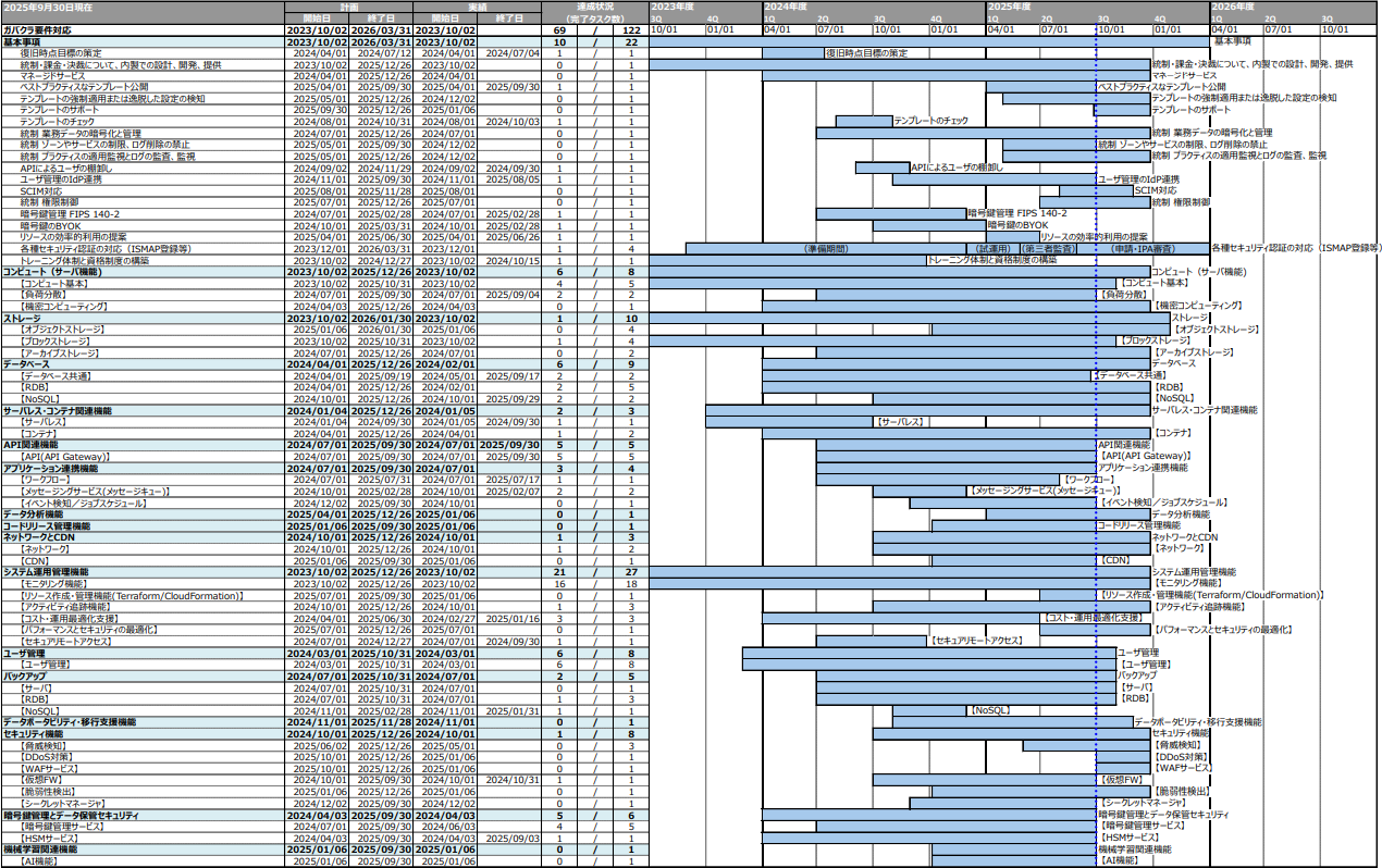 開発計画では、2025年度中にガバメントクラウド要件対応、全122タスクを完了させる予定だ。