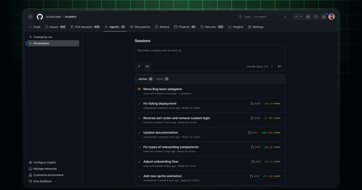 GitHubは1月26日(現地時間)、GitHub Copilotのタスク管理用「Agents」タブをリポジトリ内に追加したと発表した。これにより、利用者は従来のように別ページへ移動せず、コードやプルリクエスト、イシューと同じ画面でエージェントのセッションを一括管理できるようになった。